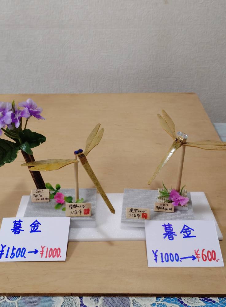 その七名の供養の想いを込めて、花を生けられる(一輪挿し)復興トンボを制作しました。